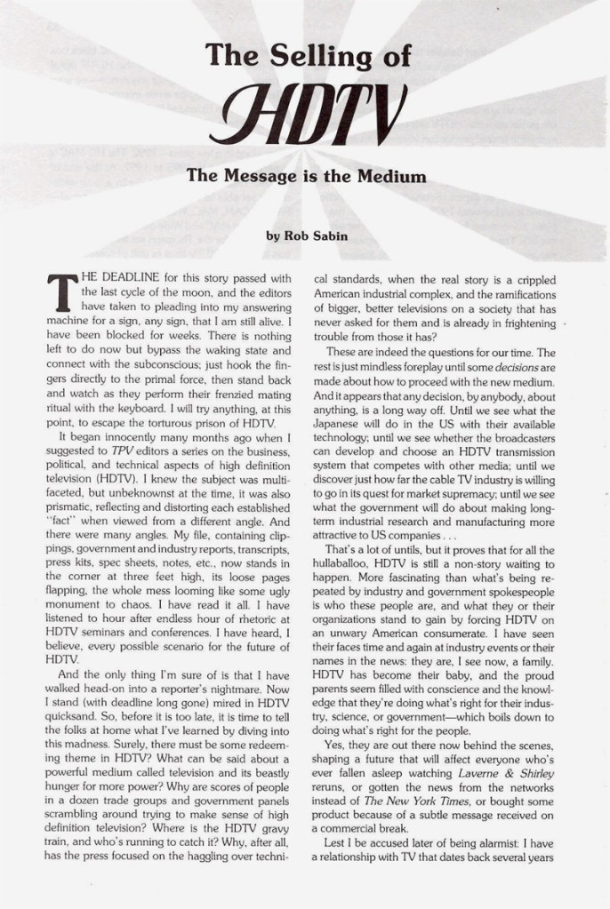 The Selling of HDTV: The Message is the Medium